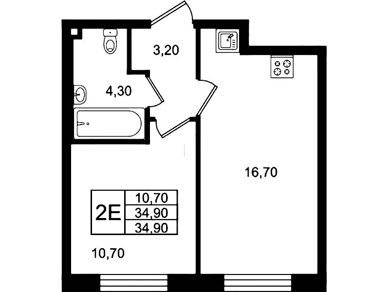 Однокомнатная квартира на 3-ем этаже 34,9 кв.м