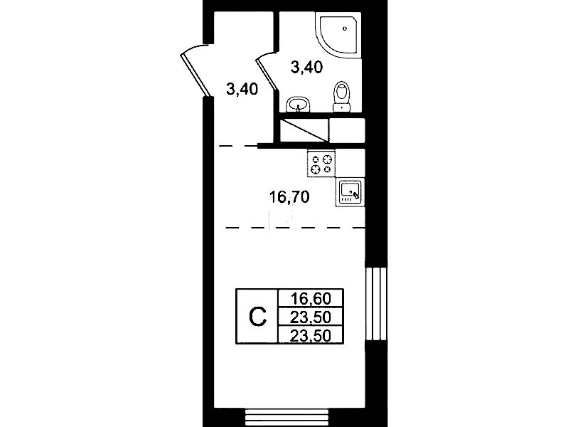 Квартира-студия на 9-ом этаже 23,5 кв.м