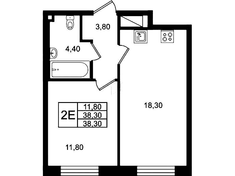 Однокомнатная квартира на 4-ом этаже 38,3 кв.м