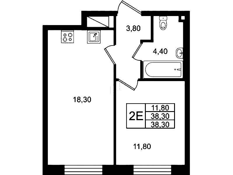 - Площадь38,3 м2