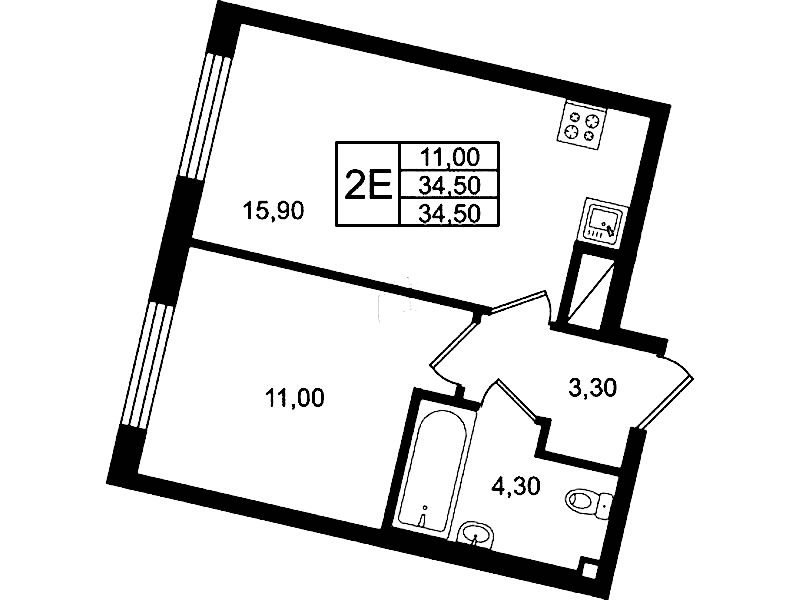 • Площадь34,5 м2