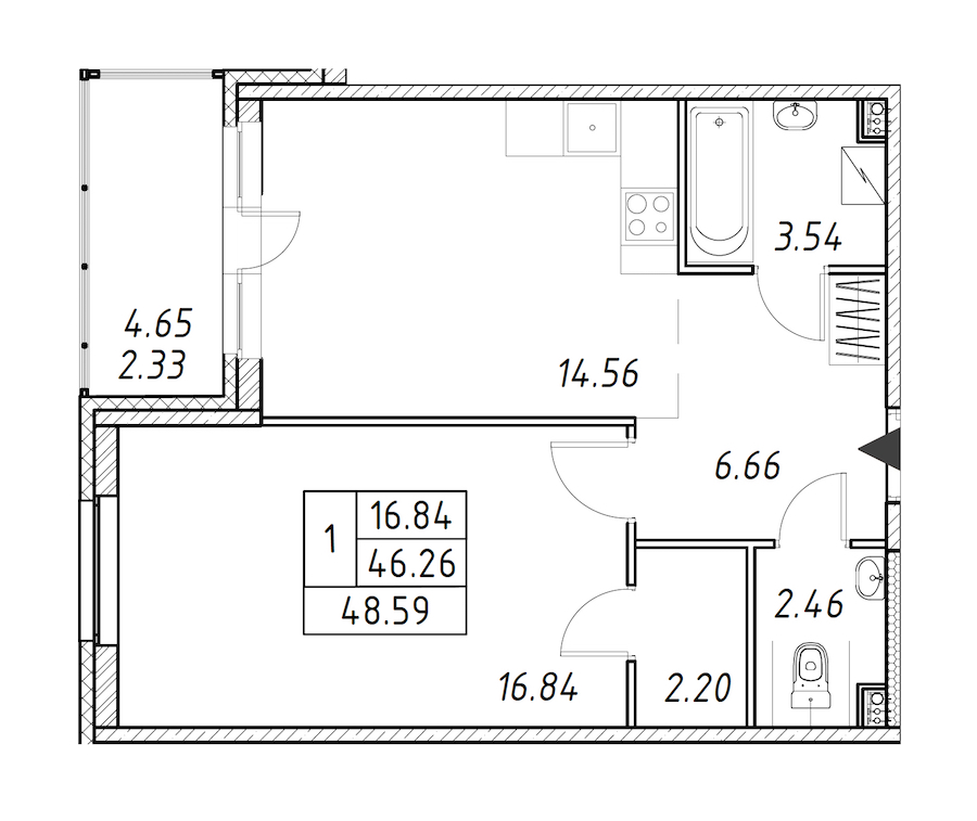 - Площадь48,59 м2