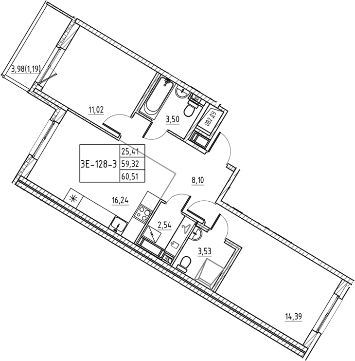 - Площадь60,51 м2