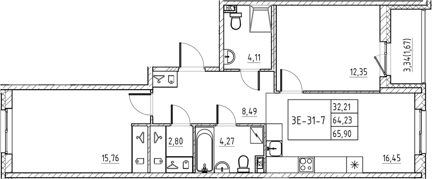 - Площадь65,9 м2