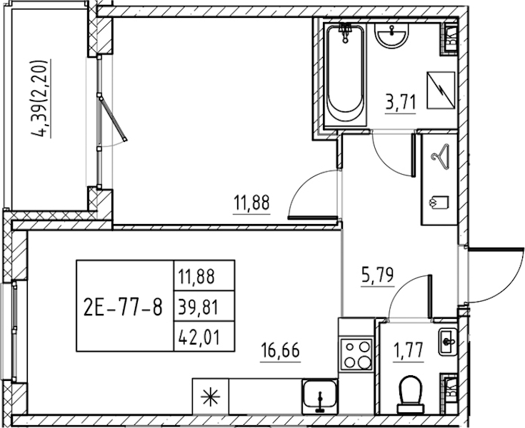• Площадь42,01 м2
