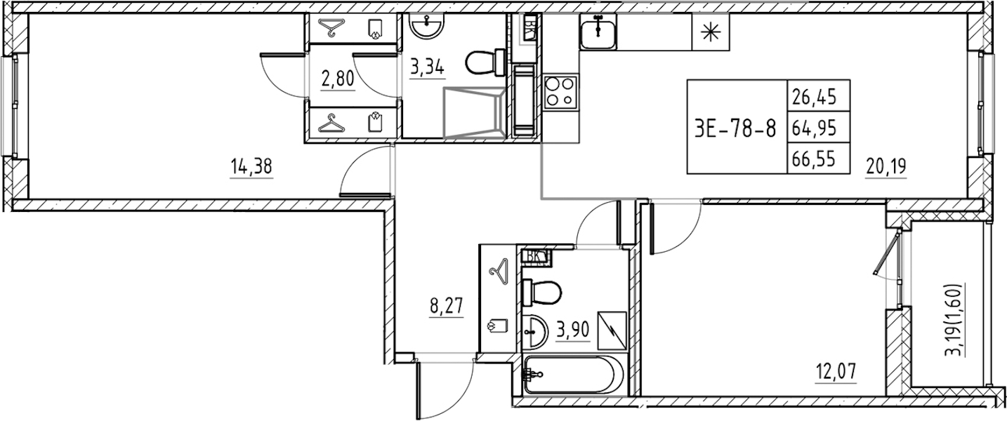 • Площадь66,55 м2