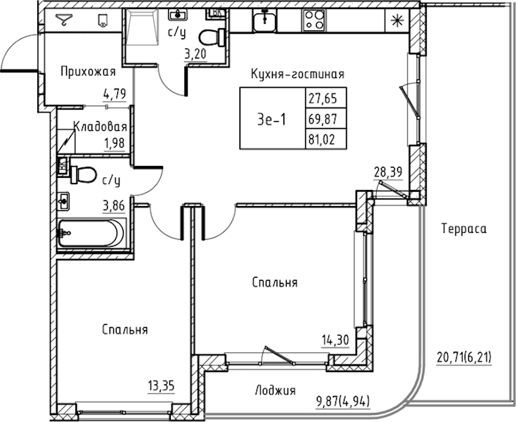 - Площадь81,02 м2
