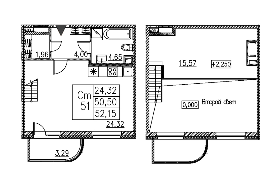 - Площадь52,15 м2