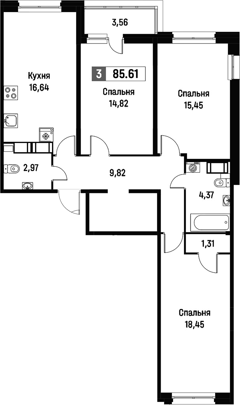 - Площадь85,61 м2