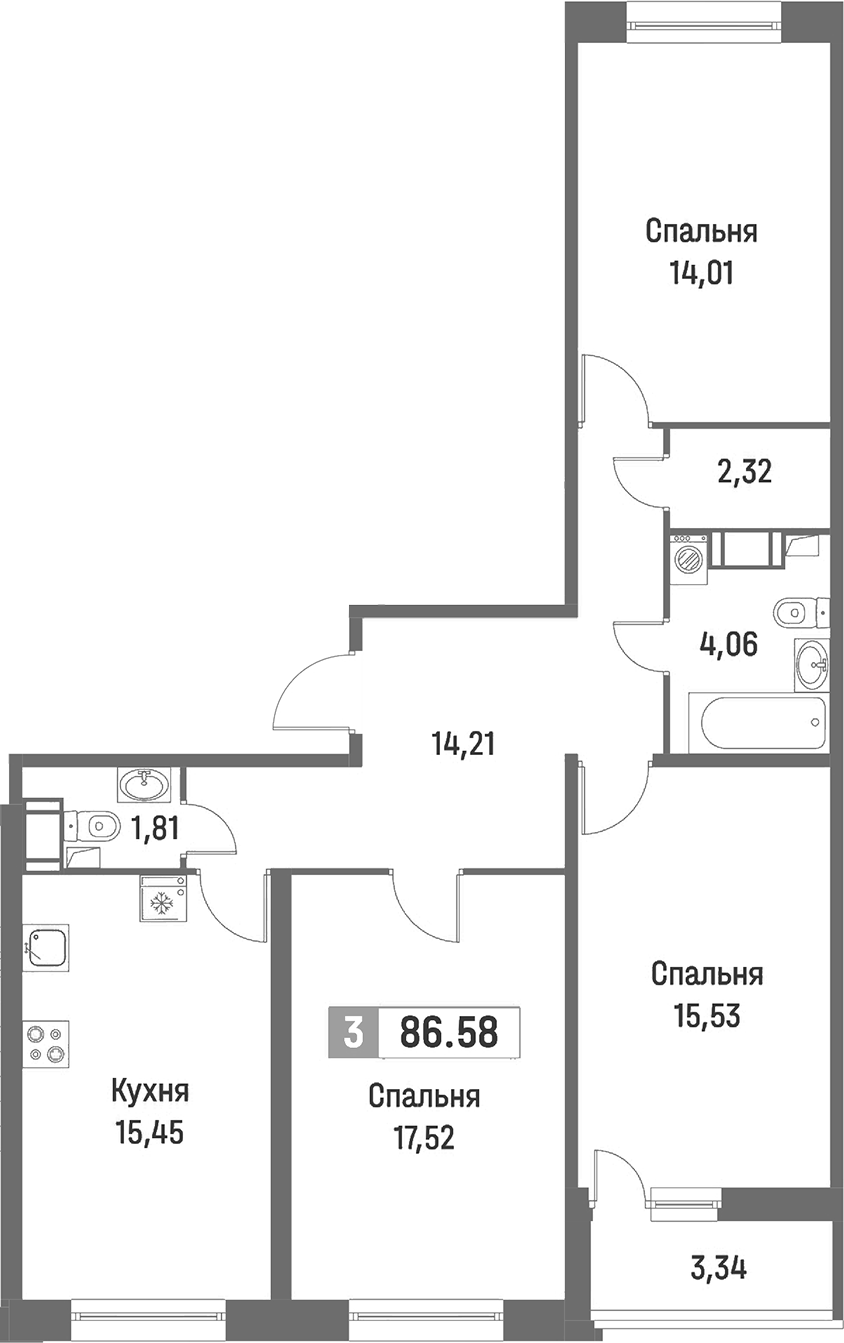 - Площадь86,58 м2