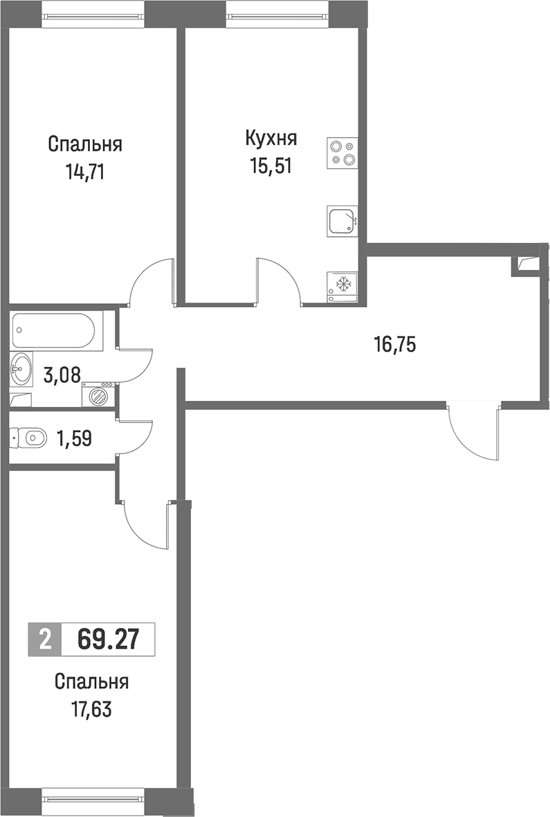 - Площадь кухни15,51 м2