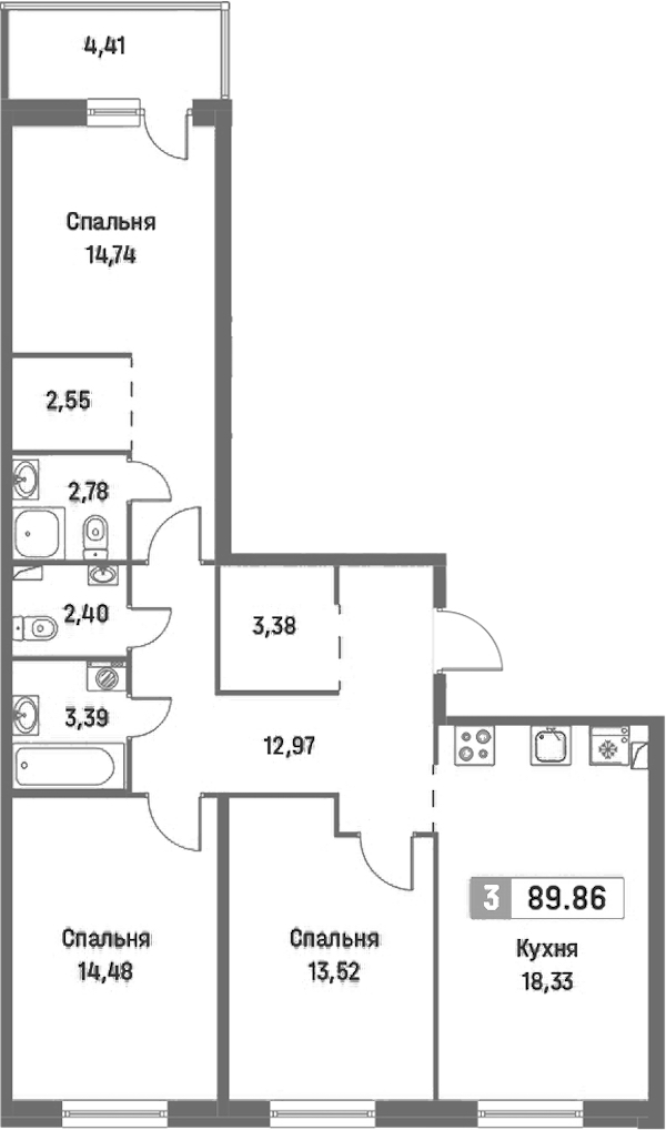 • Площадь89,86 м2