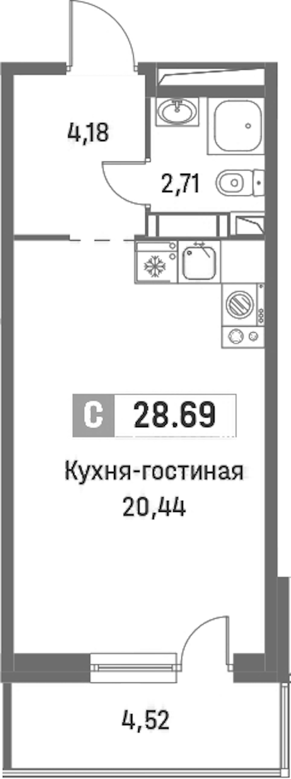 - Площадь28,69 м2