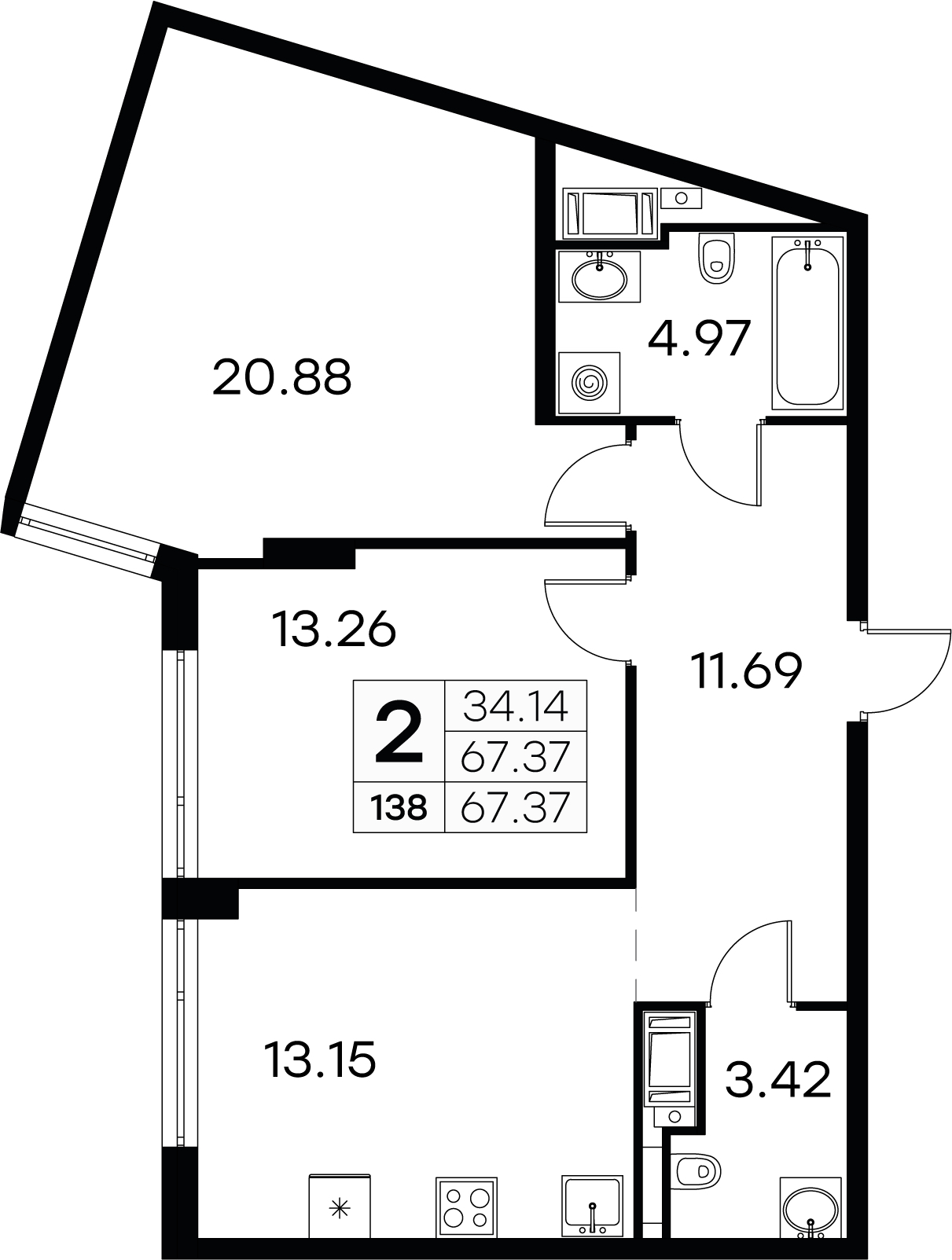 • Площадь67,37 м2