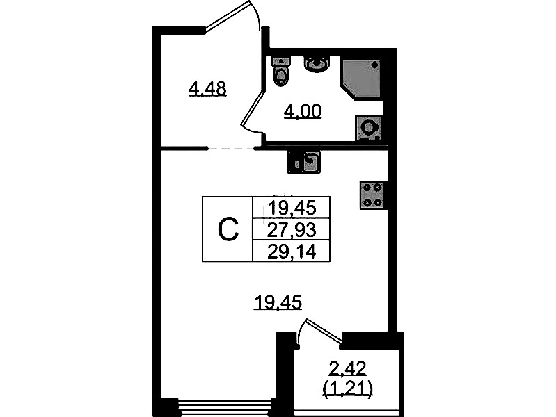 • Площадь29,14 м2