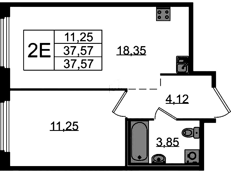 Однокомнатная квартира на 1-ом этаже 37,57 кв.м
