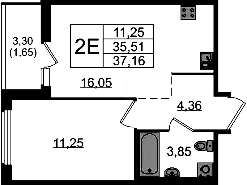 • Площадь37,16 м2