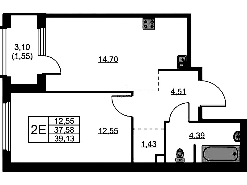 - Площадь39,13 м2