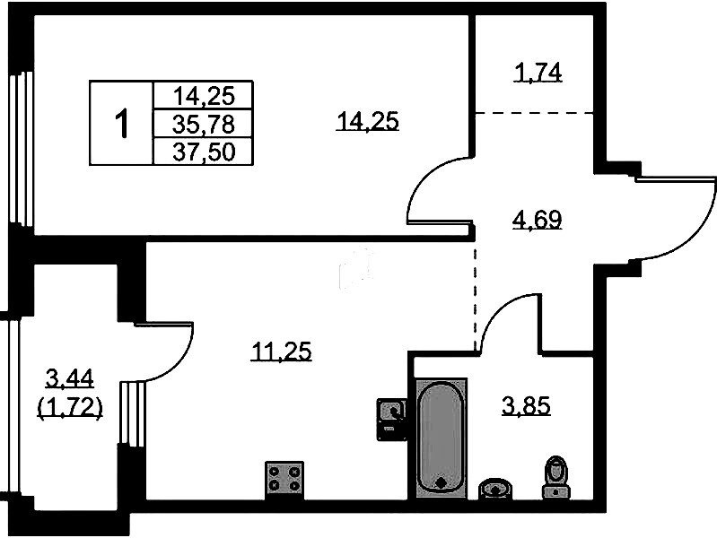 • Площадь37,5 м2