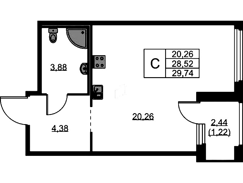 • Площадь29,74 м2