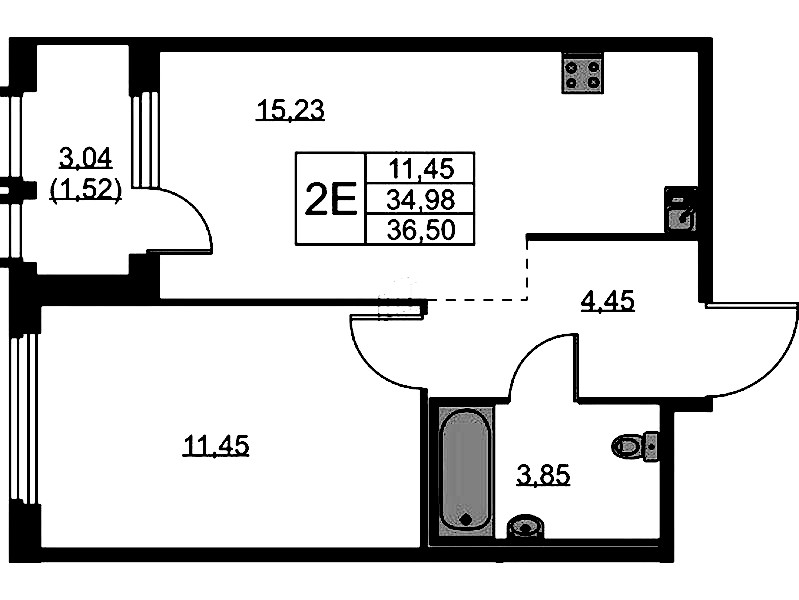 • Площадь кухни15,23 м2
