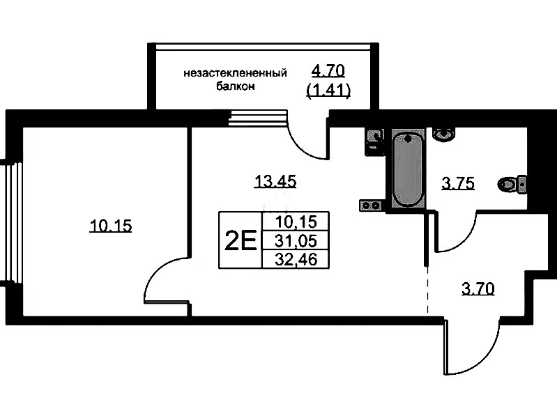 Однокомнатная квартира на 12-ом этаже 32,46 кв.м