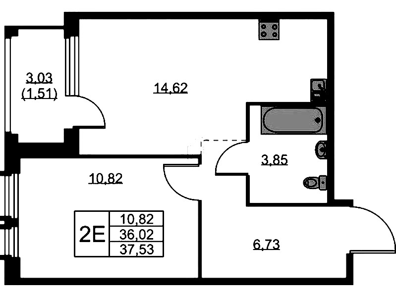 Однокомнатная квартира на 14-ом этаже 37,53 кв.м