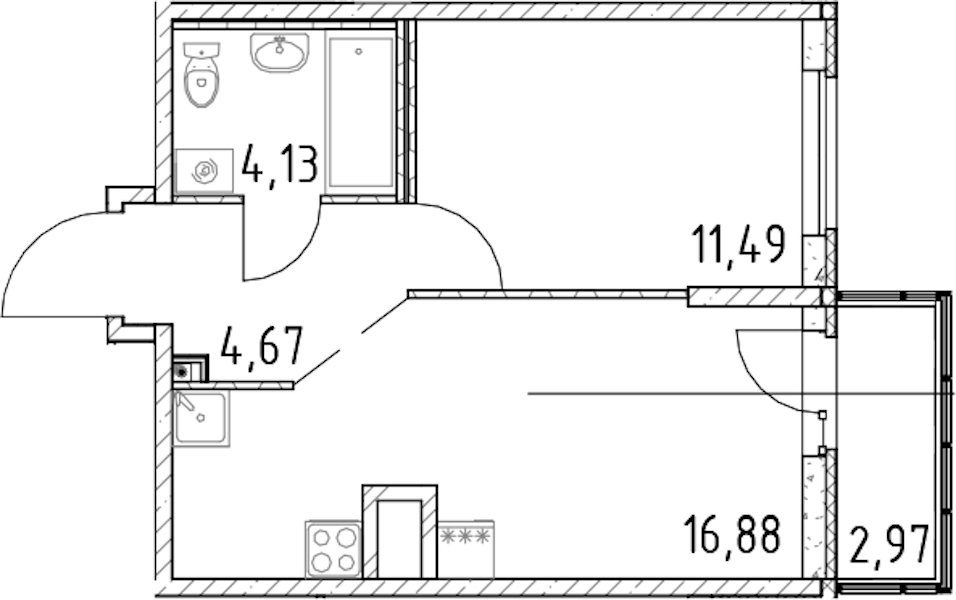 Однокомнатная квартира на 21-ом этаже 37,17 кв.м