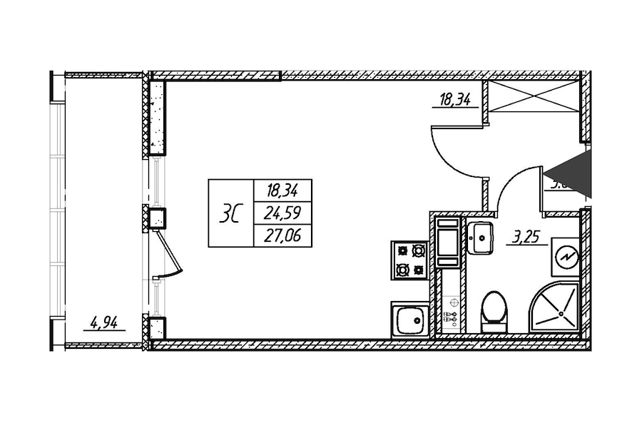 - Площадь24,6 м2