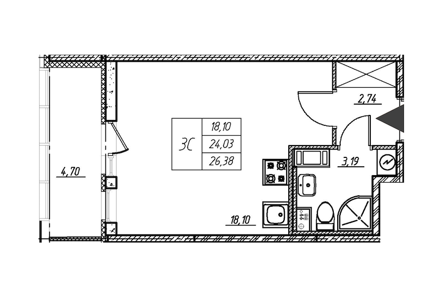 - Площадь23,5 м2