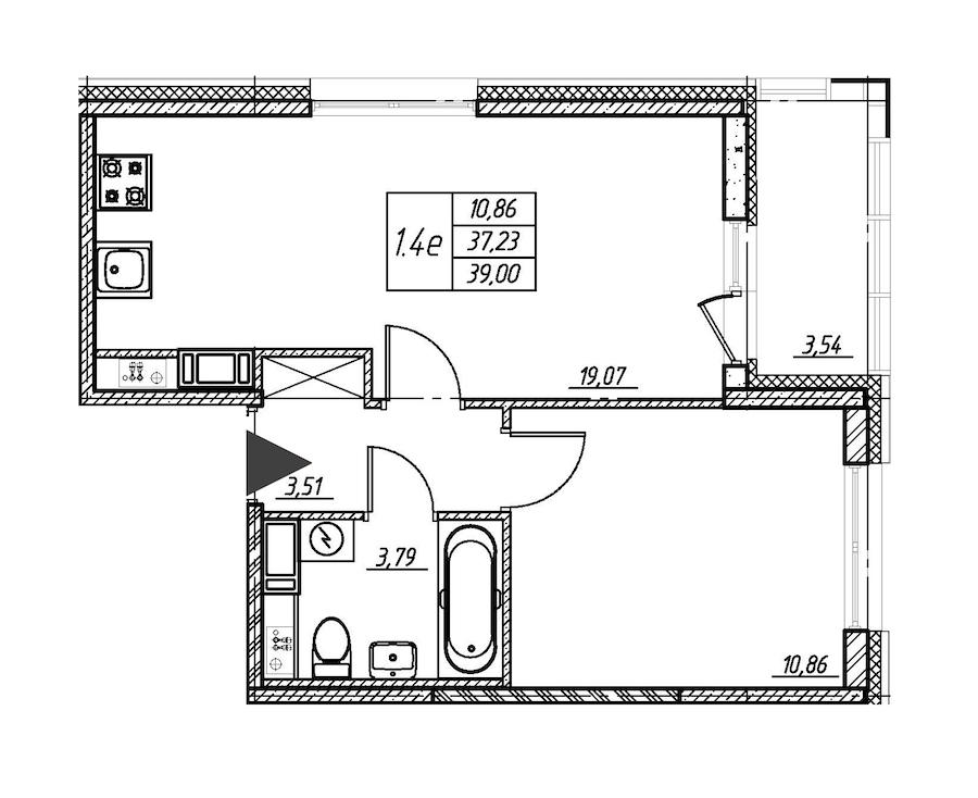 - Площадь кухни19,07 м2