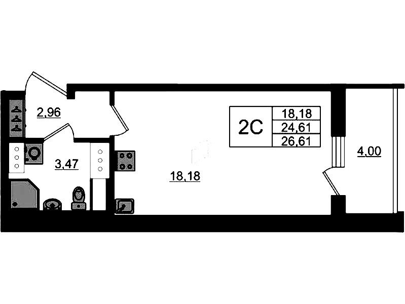 - Площадь24,61 м2