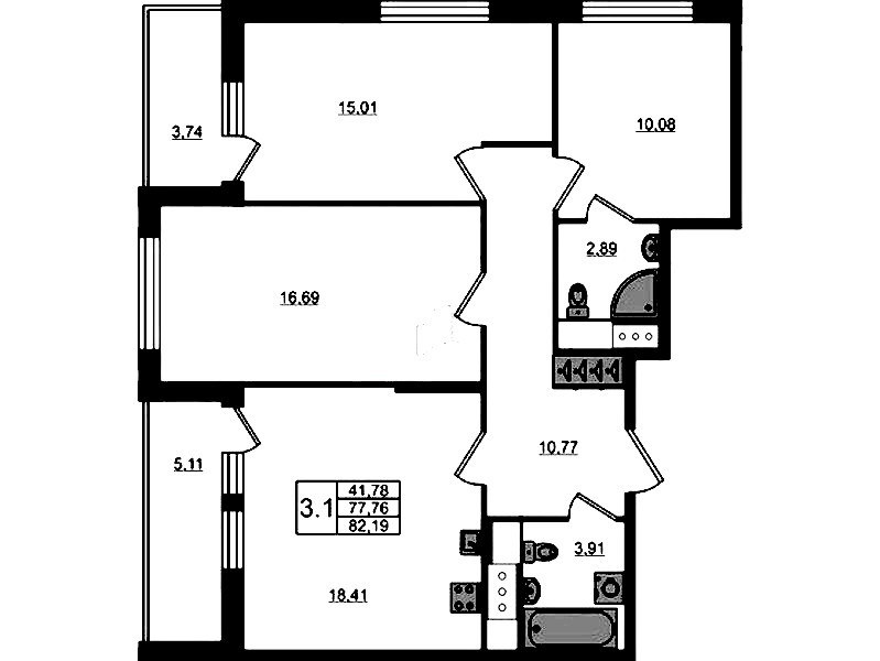 - Площадь77,76 м2
