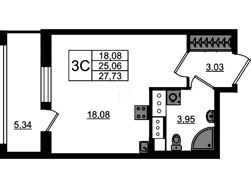 - Площадь25,06 м2