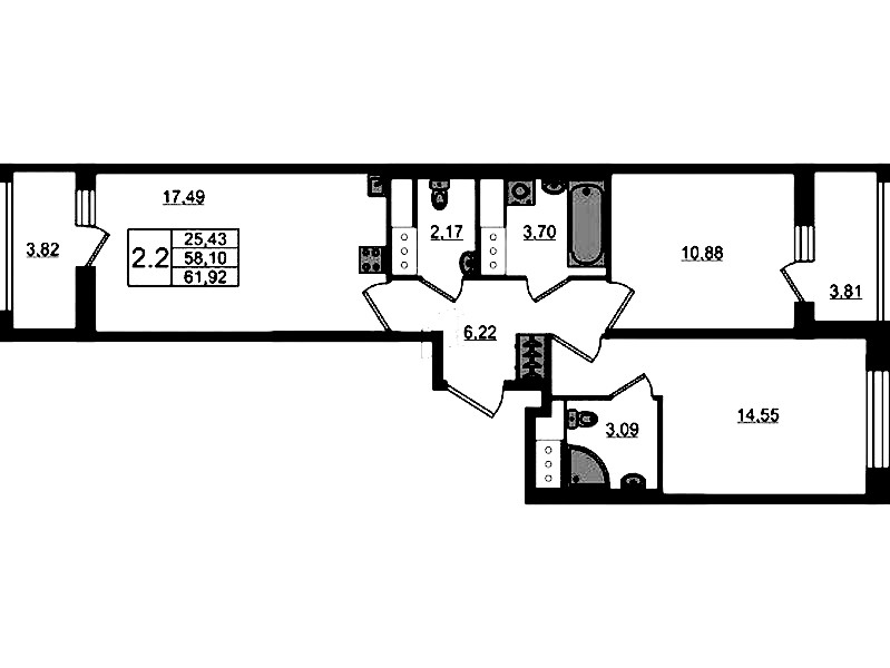 - Площадь58,1 м2