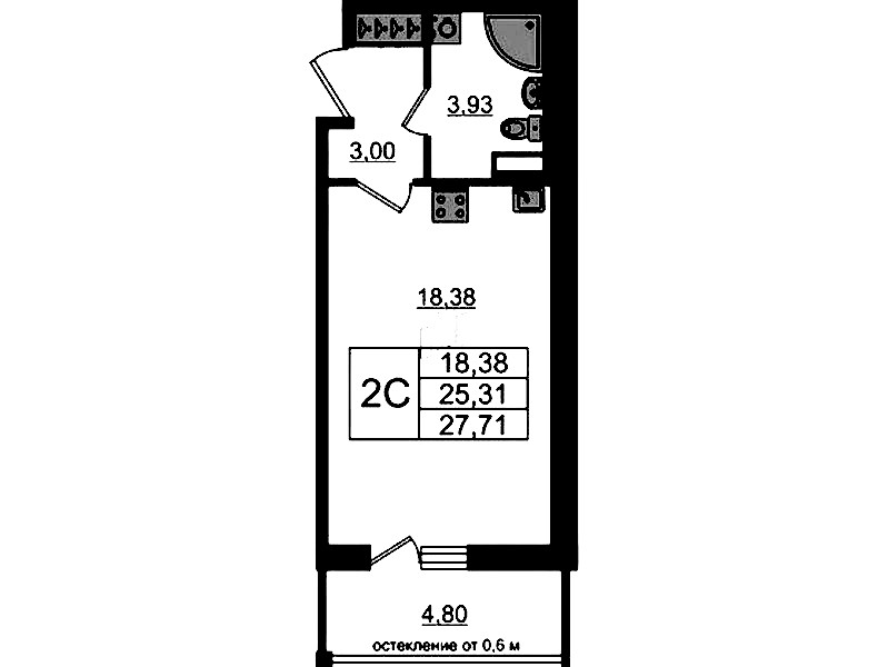 Квартира-студия на 2-ом этаже 25,31 кв.м