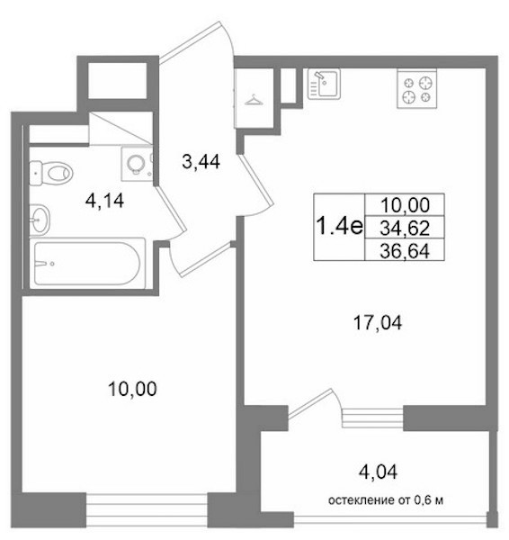 • Площадь34,62 м2