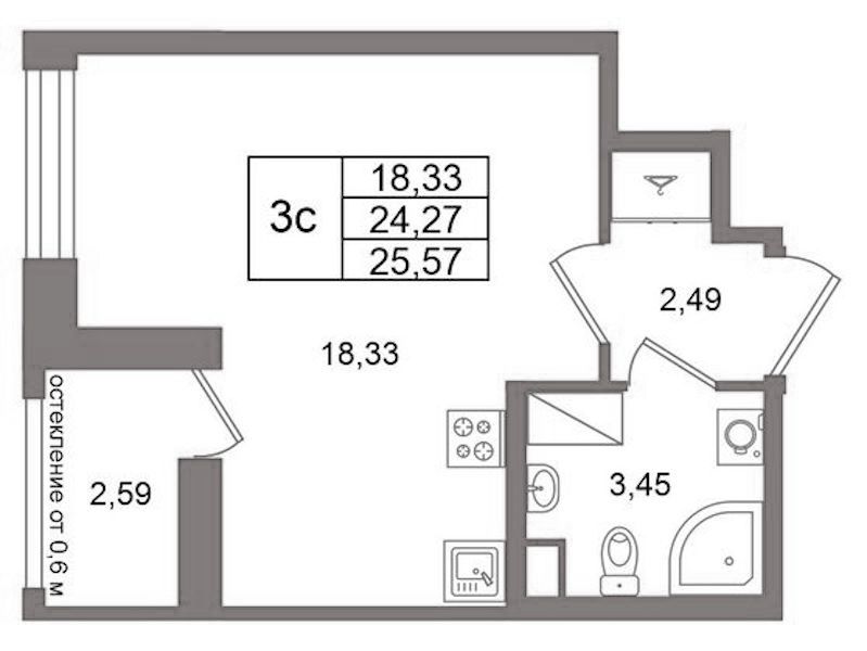 Квартира-студия на 9-ом этаже 24,27 кв.м