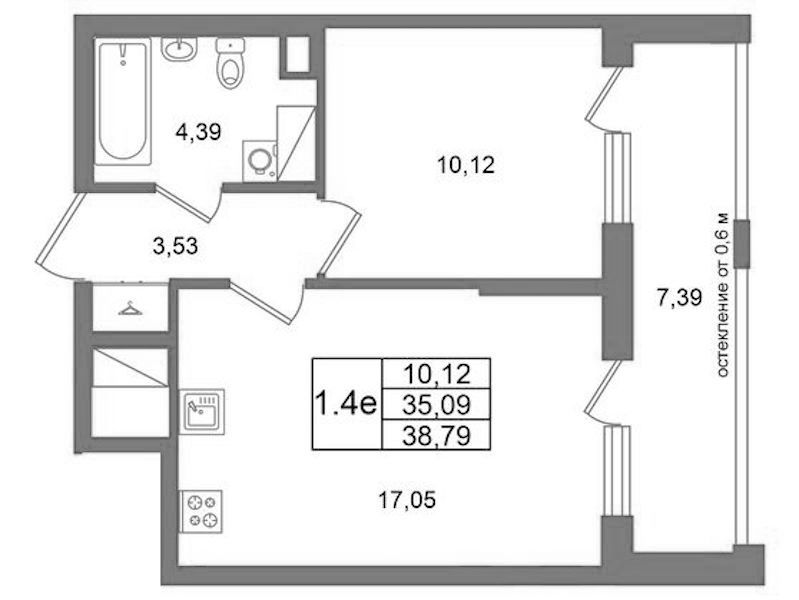 Однокомнатная квартира на 20-ом этаже 35,09 кв.м