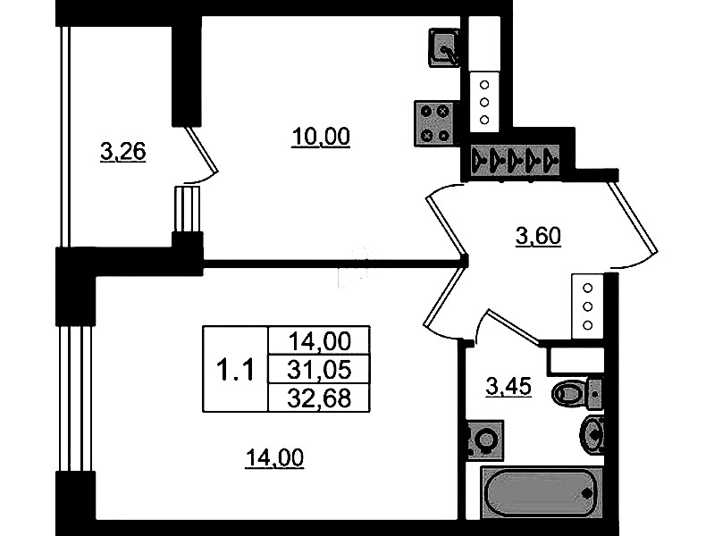 - Площадь31,05 м2