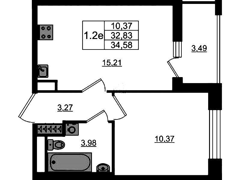 Однокомнатная квартира на 2-ом этаже 32,83 кв.м