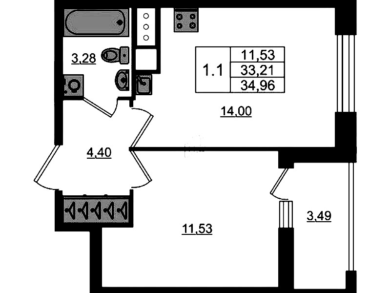 - Площадь33,21 м2