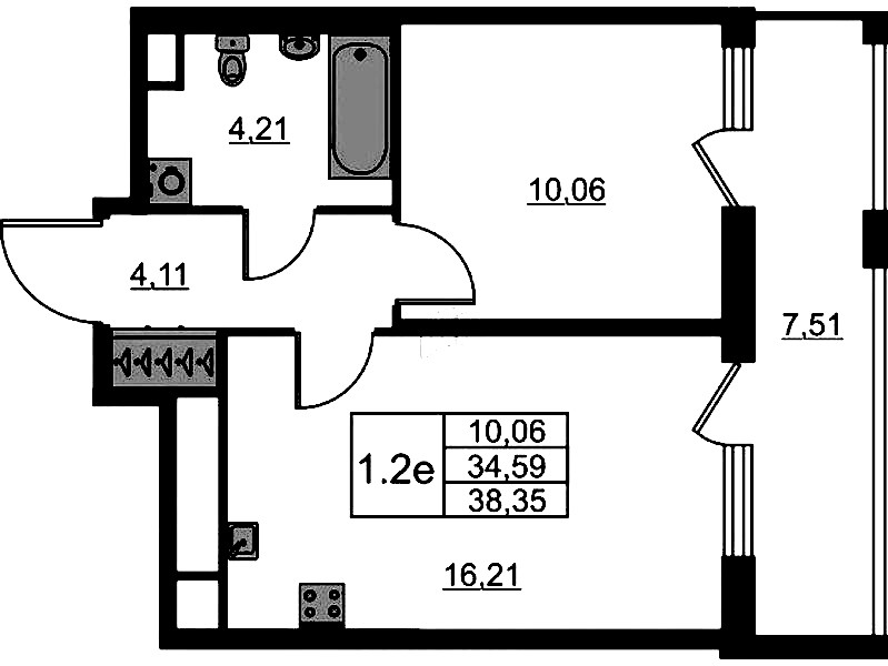 - Площадь34,59 м2