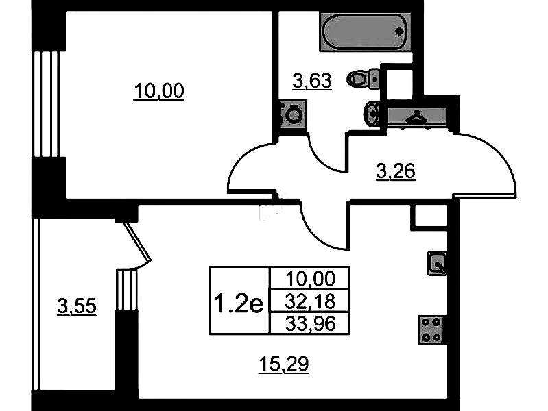 - Площадь кухни15,29 м2