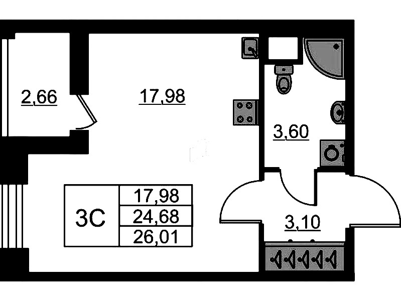Квартира-студия на 1-ом этаже 24,68 кв.м