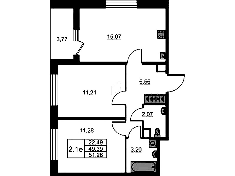 - Площадь49,39 м2