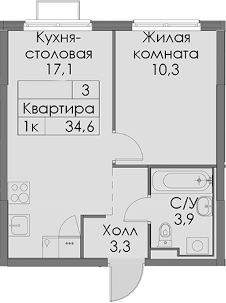 - Площадь34,6 м2