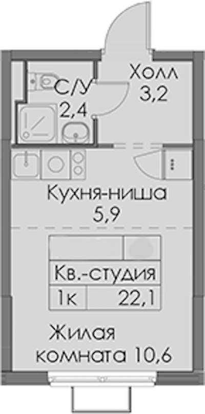Квартира-студия на 2-ом этаже 22,1 кв.м