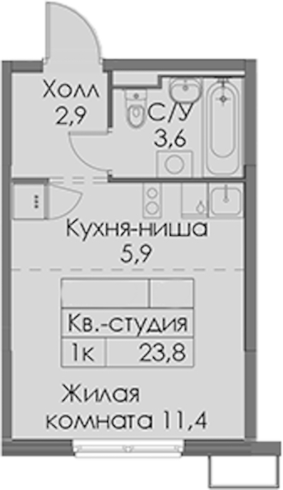 Квартира-студия на 9-ом этаже 23,8 кв.м