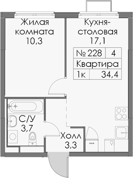 - Площадь34,4 м2